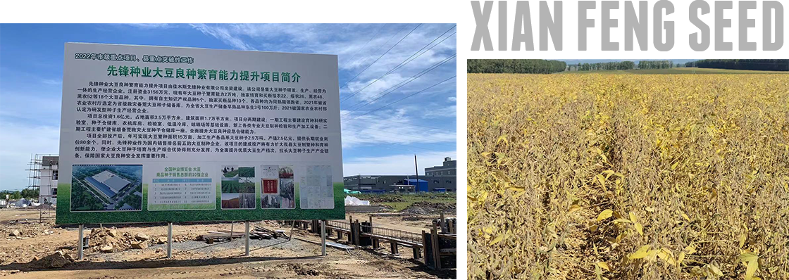 2022年公司在樺南縣工業(yè)園區(qū)進行擴建,項目總投資1.6億元,總占地面積3.5萬平方米,總建筑面積1.7萬平方米。建有育種科研實驗室、種子倉儲庫、農(nóng)機庫房、檢驗室、低溫冷庫、晾曬場等基礎(chǔ)設(shè)施,新上各類專業(yè)大豆制種檢驗和生產(chǎn)加工設(shè)備20臺套;現(xiàn)有年大豆種子加工能力2.5萬噸。